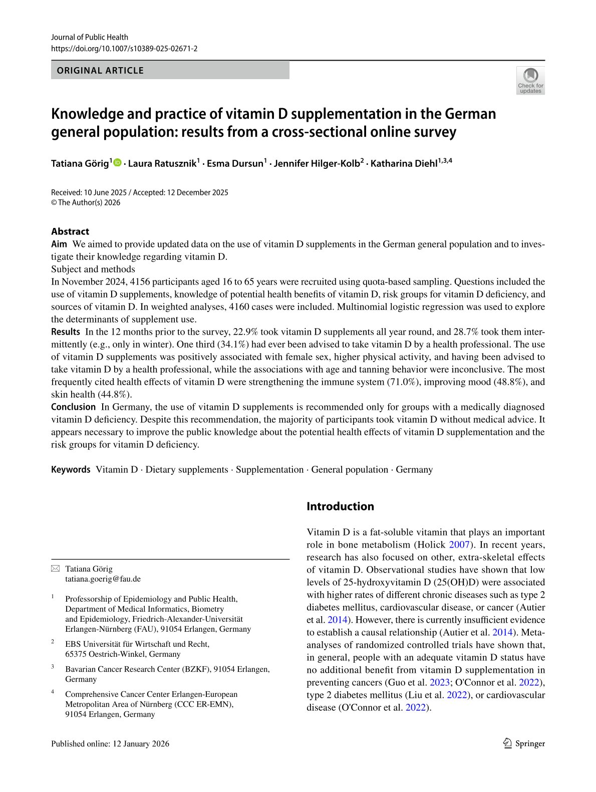 Die Publikation im Journal of Public Health kann unter dem folgenden Link eingesehen werden: https://doi.org/10.1007/s10389-025-02671-2
